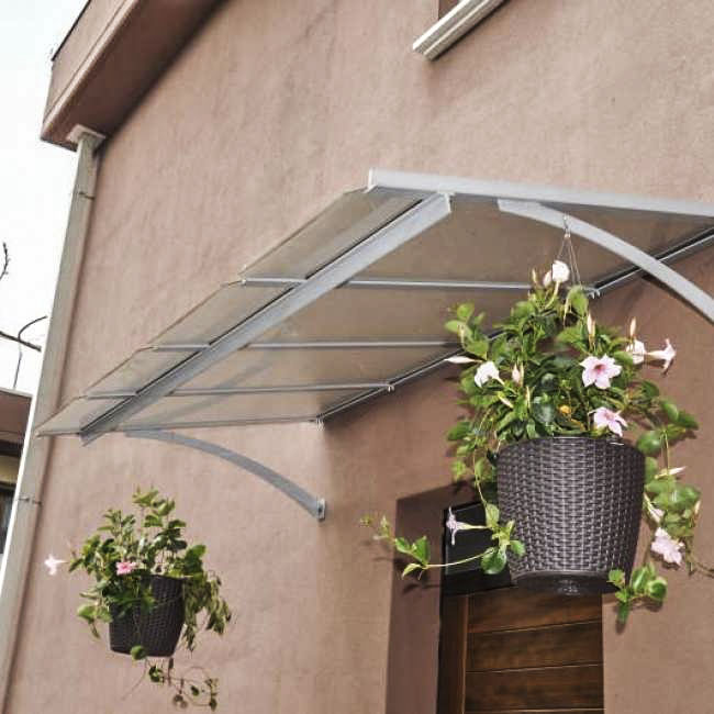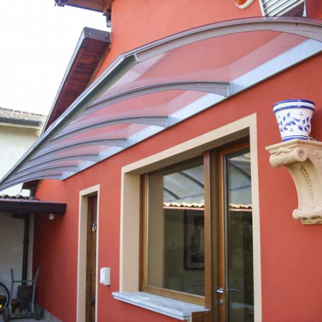 Tettoia sopra le porte e le finestre in policarbonato e metallo
