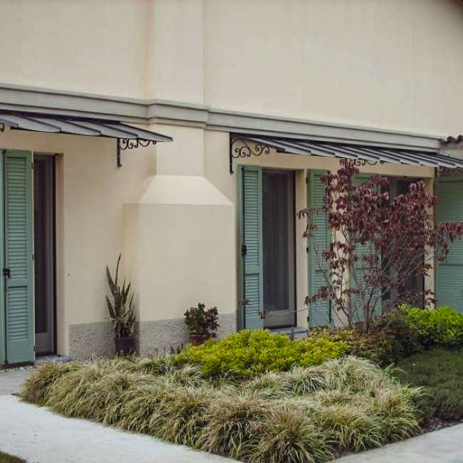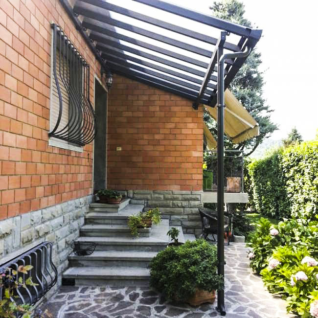 Una tettoia sopra le finestre in plexiglass e metallo può essere una scelta pratica ed esteticamente gradevole per proteggere le finestre dalle intemperie. Il policarbonato è un materiale trasparente e resistente che permette di godere della luce naturale senza essere esposti alle intemperie. D’altra parte, il metallo è un materiale durevole e resistente agli agenti atmosferici e puoi scegliere tra varie opzioni di verniciatura a polvere nei vari colori, per abbinarsi all’estetica della tua casa.