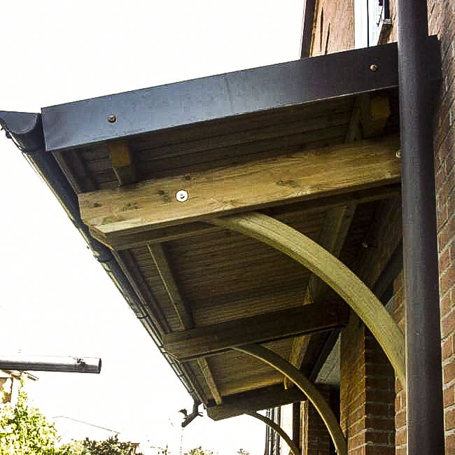 Tettoia sopra le porte e le finestre in legno ed ecotegola