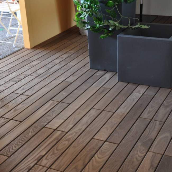 Le essenze disponibili sono svariate, dagli esotici Ipè e Teak Vaporizzato ai continentali Larice Siberiano, Frassino termotrattato e Pino di Svezia; anche in legno composito.