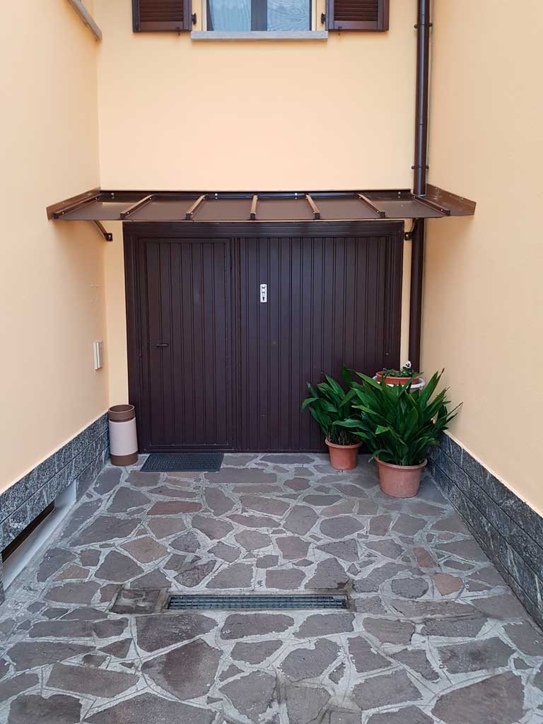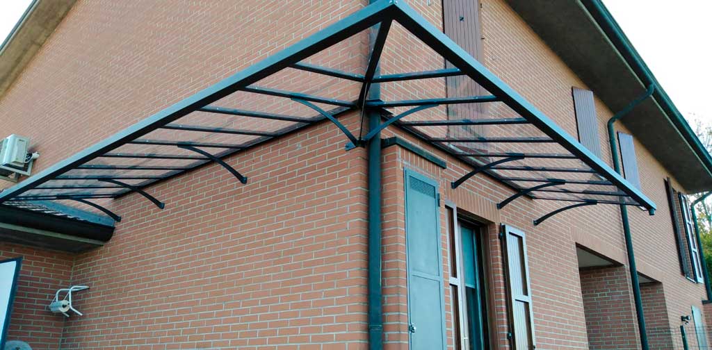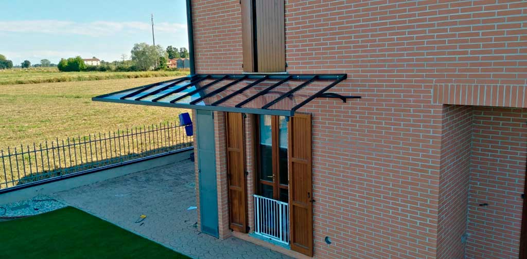Copertura con policarbonato compatto protetto spessore 4mm colore fume’ o trasparente.